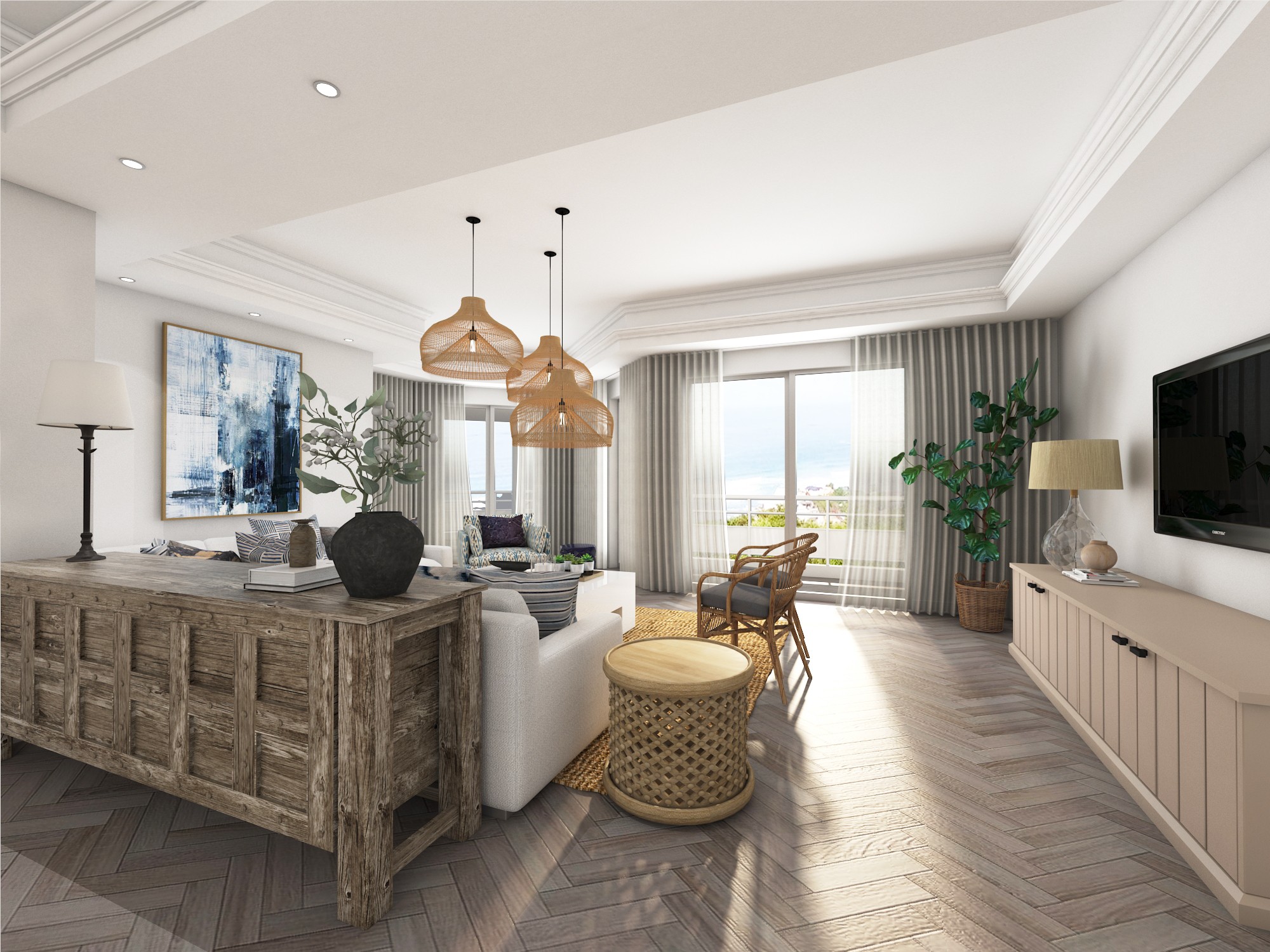 "This project in Libreville, Gabon (West Africa), was a turnkey renovation project of an apartment block for re-use as long and short-term accommodation. We were tasked with the Interior Design, and full refurbishment of the Interior, including supplying all finishes, fixtures, and equipment alongside joinery design and supply of soft furnishing."