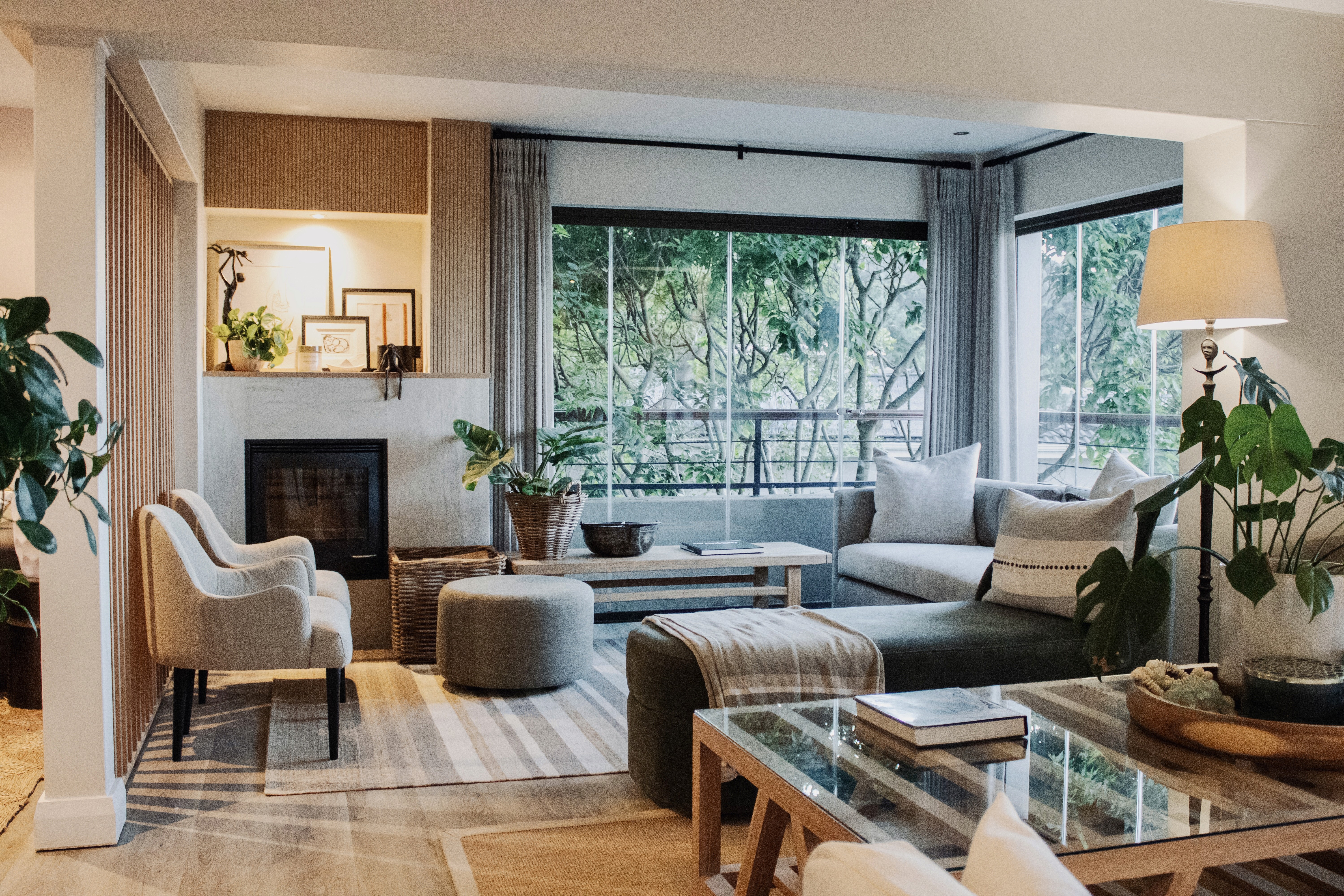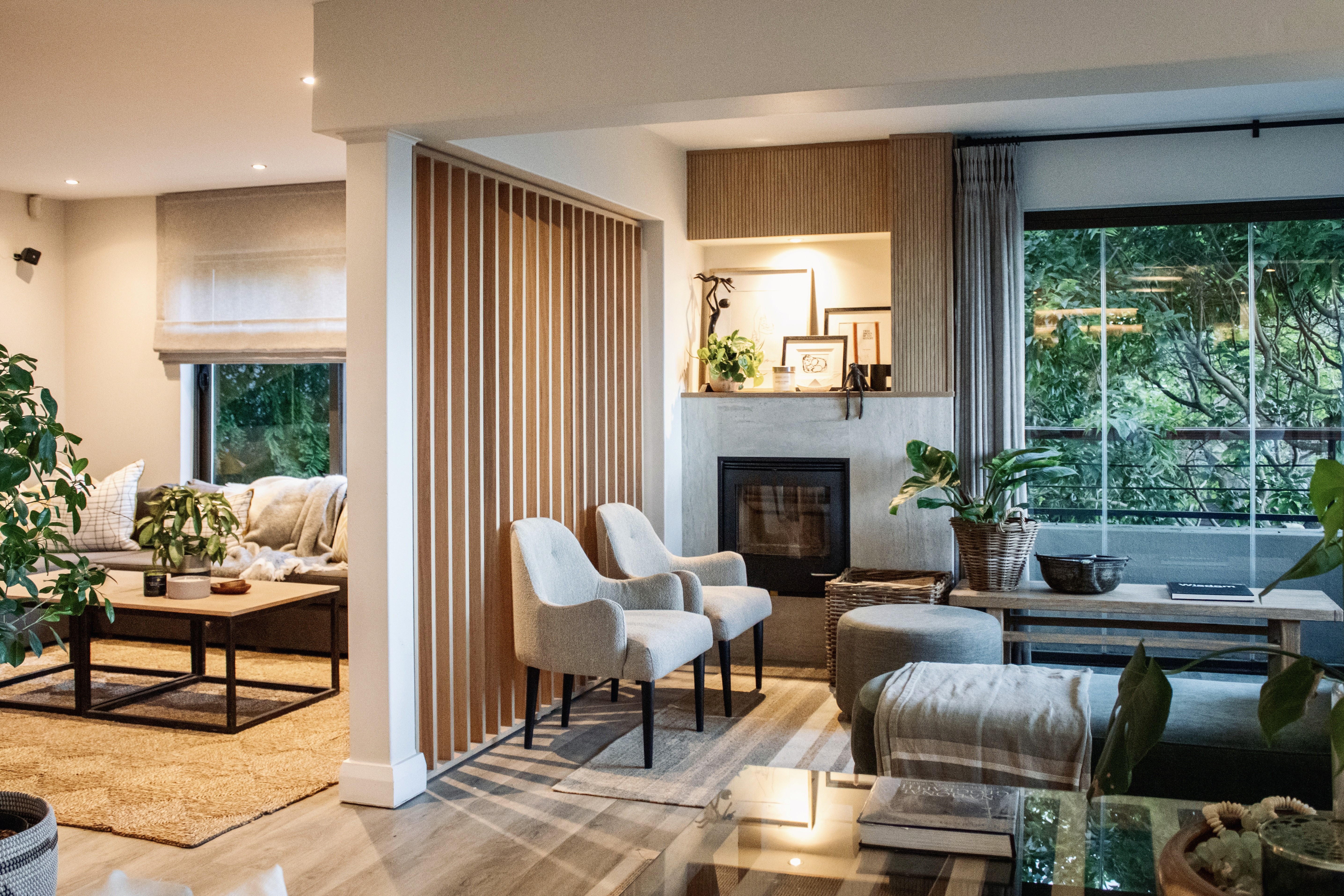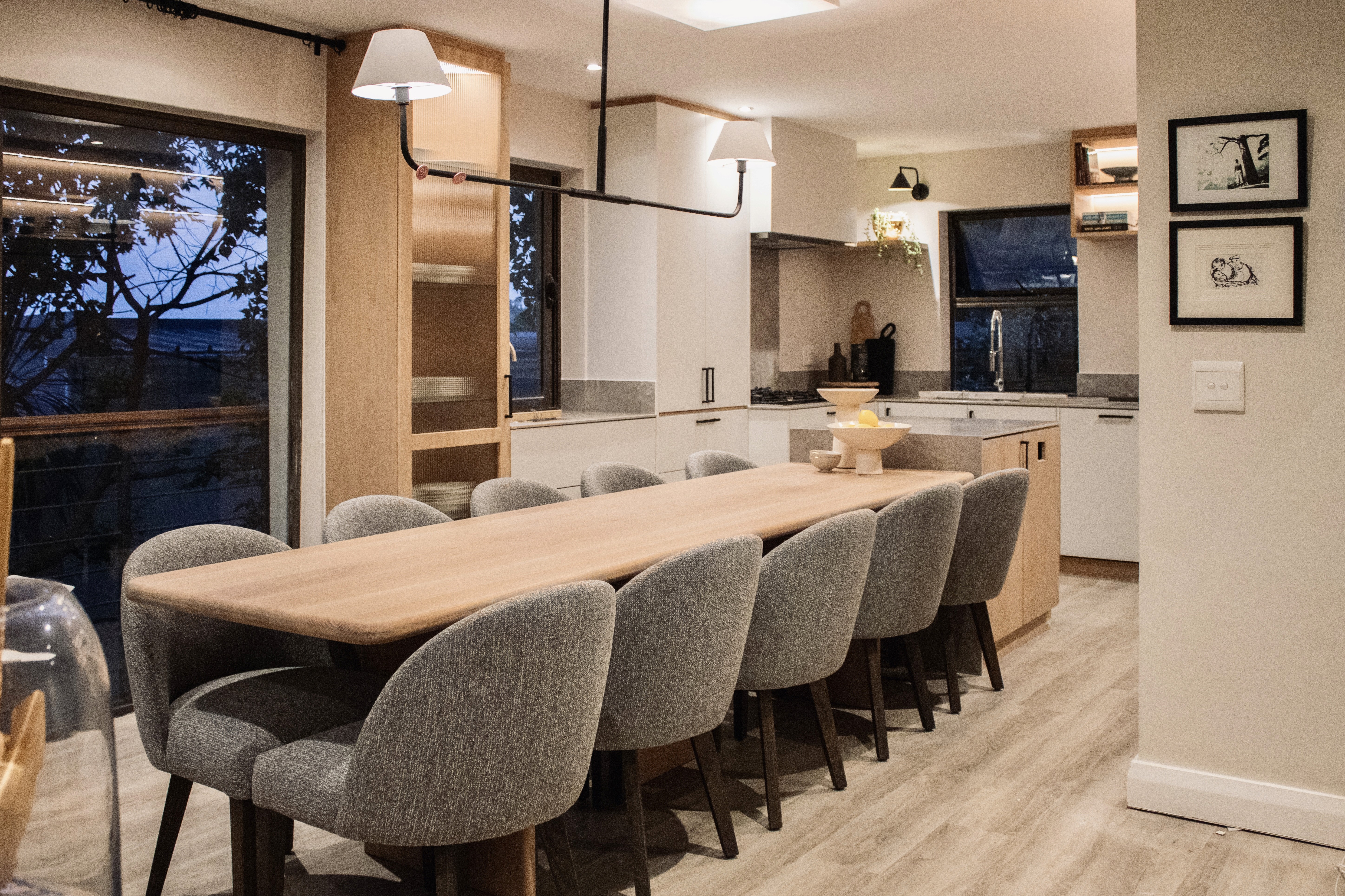 This beautiful home literally suspends in the trees of the Newlands forest. Flanked by full height windows on all sides, the view is breathtaking! We knew when we undertook this project for an existing client, that due to the multi levels as well as long distance management, it would be complex, but we also knew that it would be a labour of love and the end result would be beautiful. The interior is a textural mix of beautiful collected pieces with all focus on comfort and entertaining. A new eat-in kitchen is the focal point and central hub of this family home. A place to meet. A place to eat. A place for socializing and really appreciating the fabulous location.